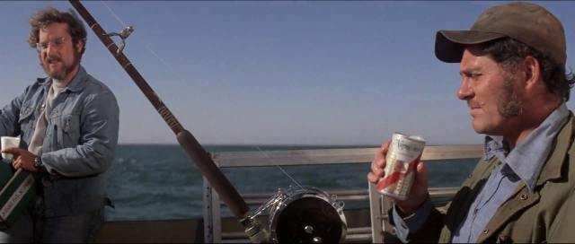 Richard Dreyfus plays Hooper, an oceanographer who’s fascinated by sharks, and has lots of gadgets and equipment for observing them. He’s the rich kid who gets to travel the world and play scientist with the family fortune, which also means he’s the comic relief that gets kicked around anytime the real men start talking. You can bet if this film had taken place on the Gulf of Mexico, you’d have all kinds of southern bumpkin caricatures calling Hooper “college boy” and crap like that. Hooper knows what he’s doing, though, and the anti-intellectual brigade isn’t gonna slow him down. Quint, however, has no quarrel with Hooper’s brain. Just his money. He blasts Hooper for having soft hands, having never worked a day in his life. He’s not wrong.