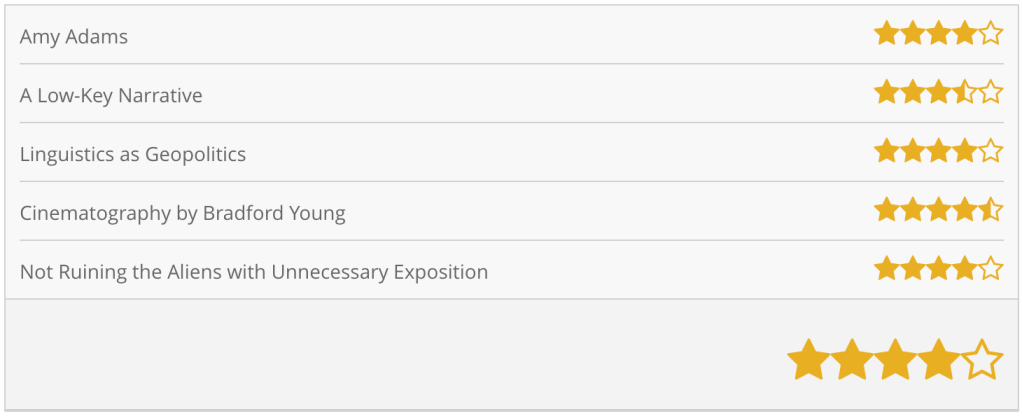Beyond explicitly bridging the communication gap, Arrival shows us how crucial it is to keep an open mind in trying times. Between opposing nations, bitter political rivalries, and even amongst one another, if we’re not willing to just calm the fuck down and open a dialogue, what hope is there for any of us? I don’t know if you’ve noticed, but there definitely are no aliens offering us help or weapons or even apocalyptic ultimatums right now. All we have is each other. It may be the cinematic equivalent of “let’s hear what the giant meteor has to say,” but there’s still hope to be found in an open dialogue.