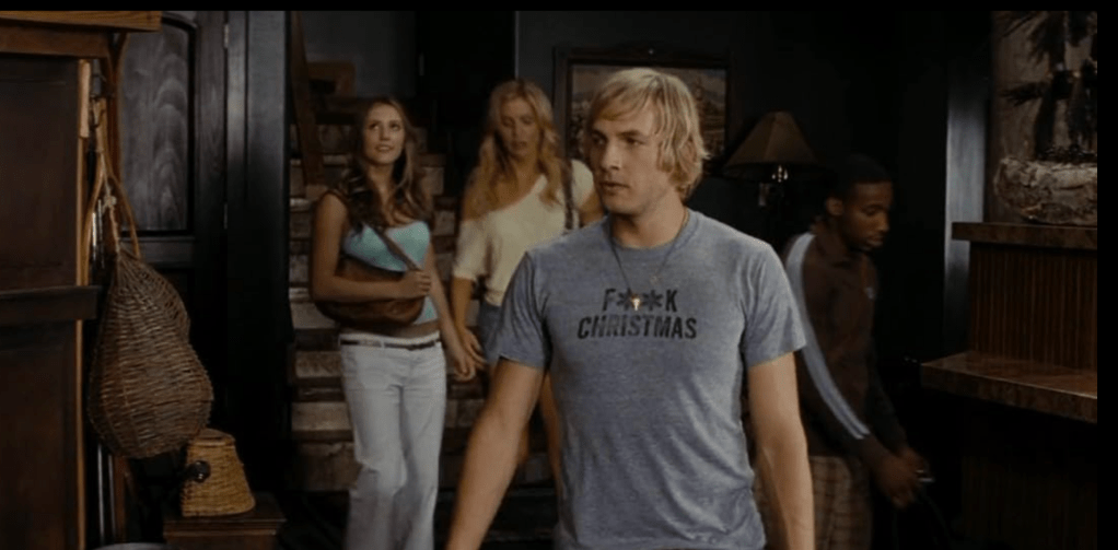 Of course, there’s also a direct nod to Silent Night, Deadly Night, as Jason kills one of his victims by lifting them up and impaling them on a set of wall-mounted deer antlers. Is this actually a reference? Or is it just conveniently similar? Hard to say, but there IS a character who walks around wearing a shirt that says “F**K CHRISTMAS”. And how THAT guy didn’t get the Silent Night themed death is a mystery to me. Then again, I may be biased.